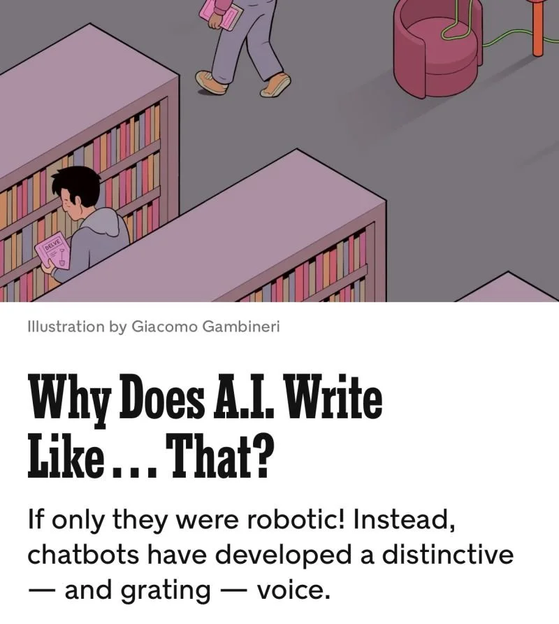 In finding and reading this article, I found it validated so much of my felt-sense around AI writing. And subsequently, the trend of the writing of those around me. The author writes, “All of this contributes to the very particular tone of A.I.-generated text, always slightly wide-eyed, overeager, insipid but also on the verge of some kind of hysteria.” And while that may be okay for the next pitch deck, it’s not okay when people seek emotional support from AI.